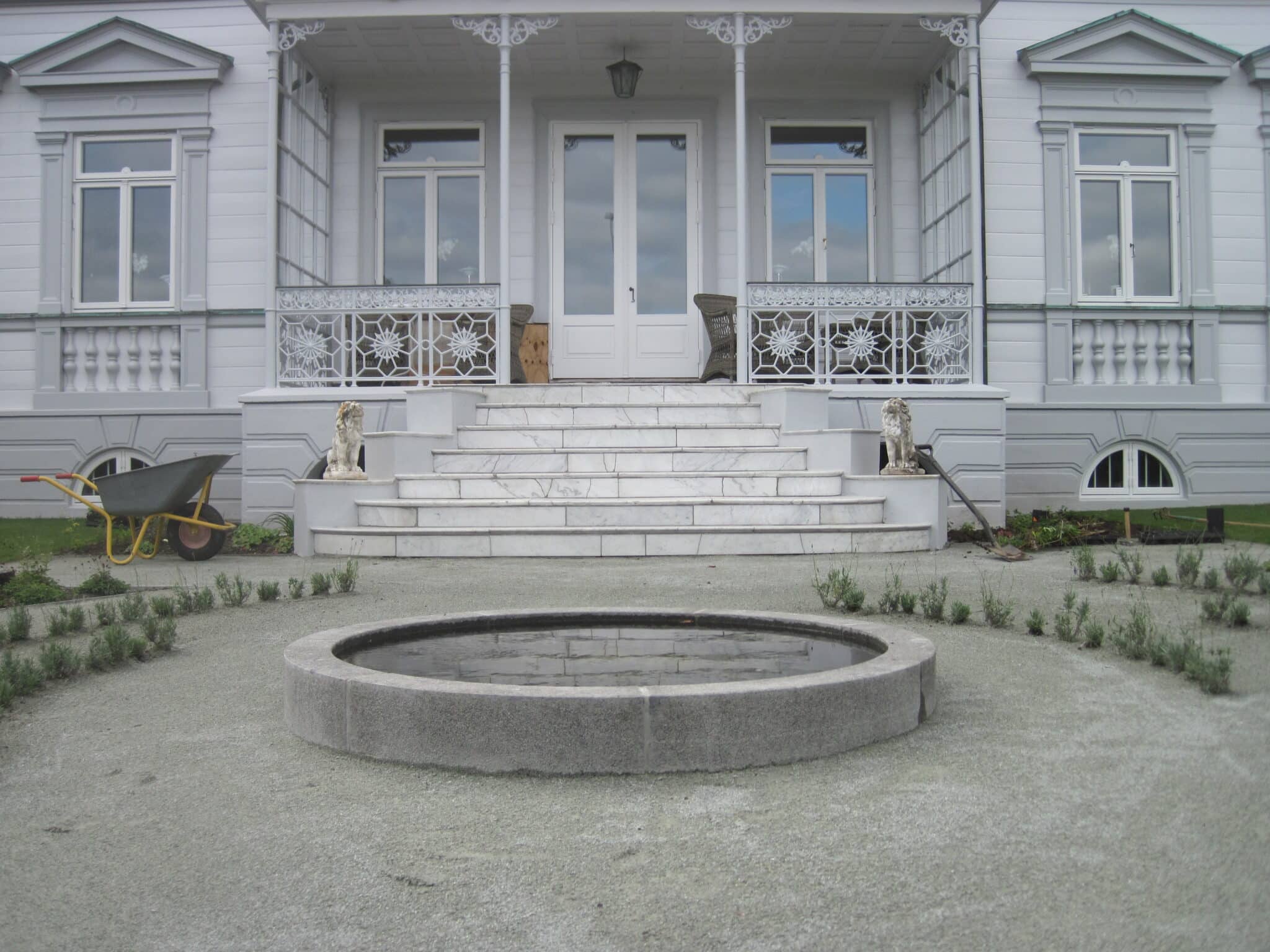 - Granittrappe med mosaikbelægning i bornholmsk granit