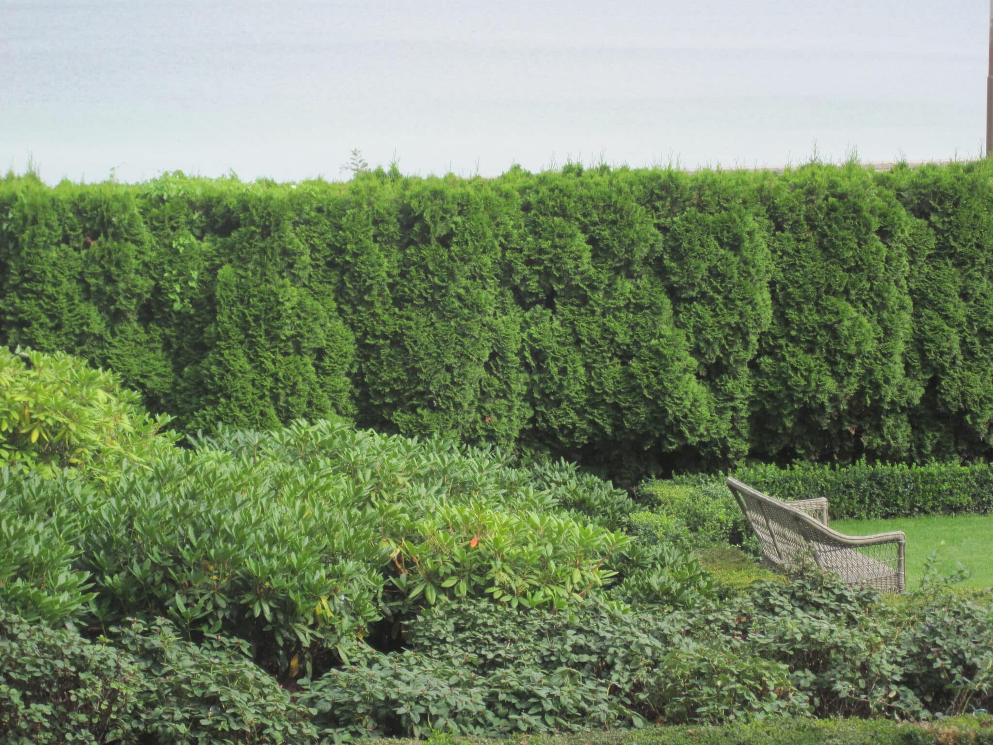 - Stedsegrønne elementer som buksbom, thuja og rododendron