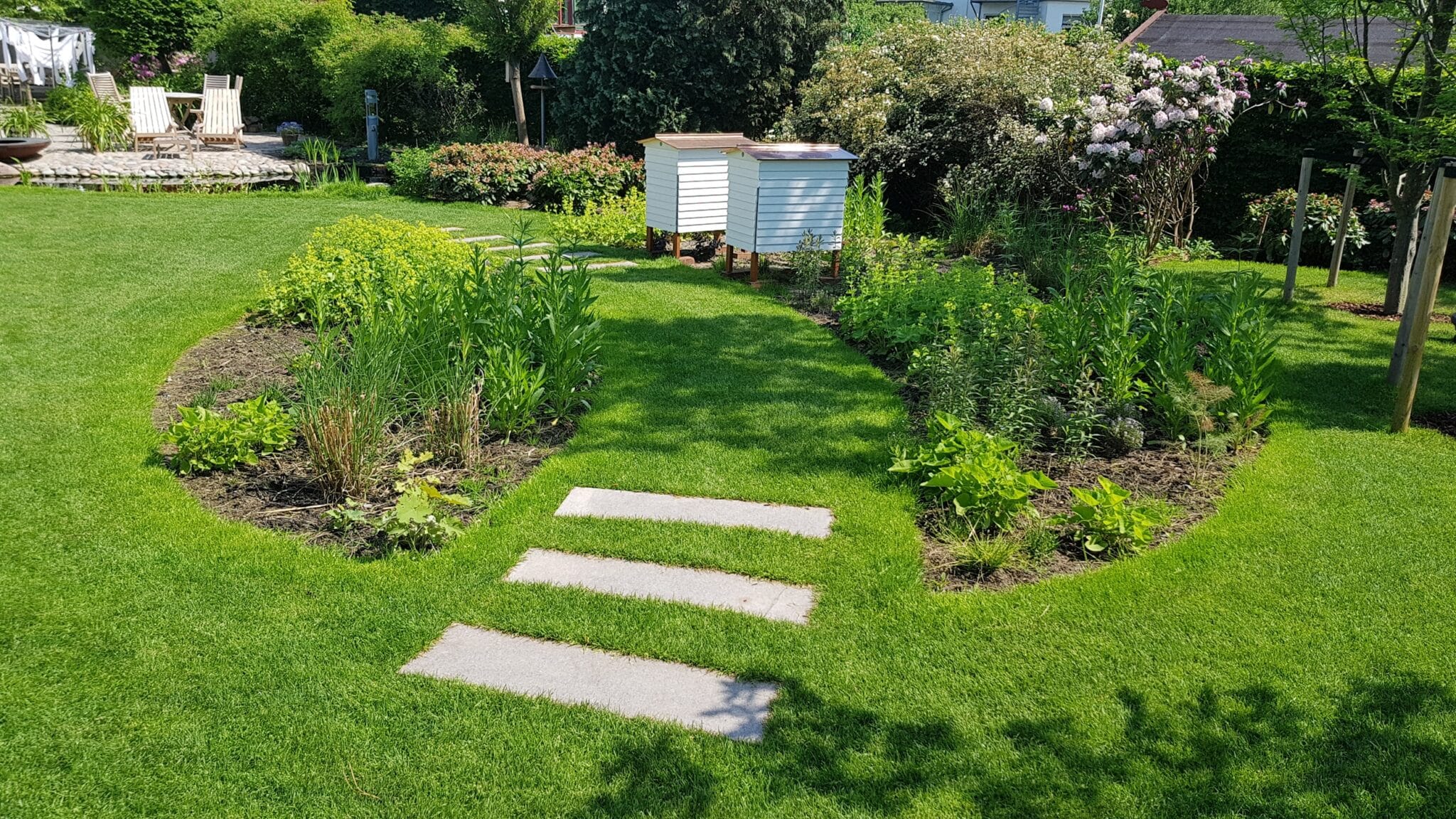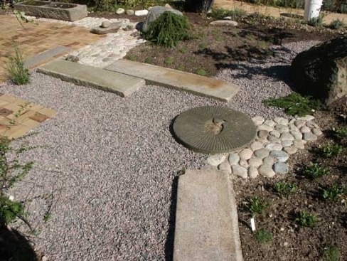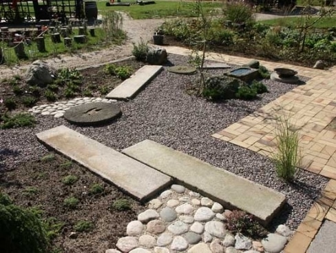 Vi arbejder med bordursten på kreativ vis i haverne. Se billederne til inspiration.