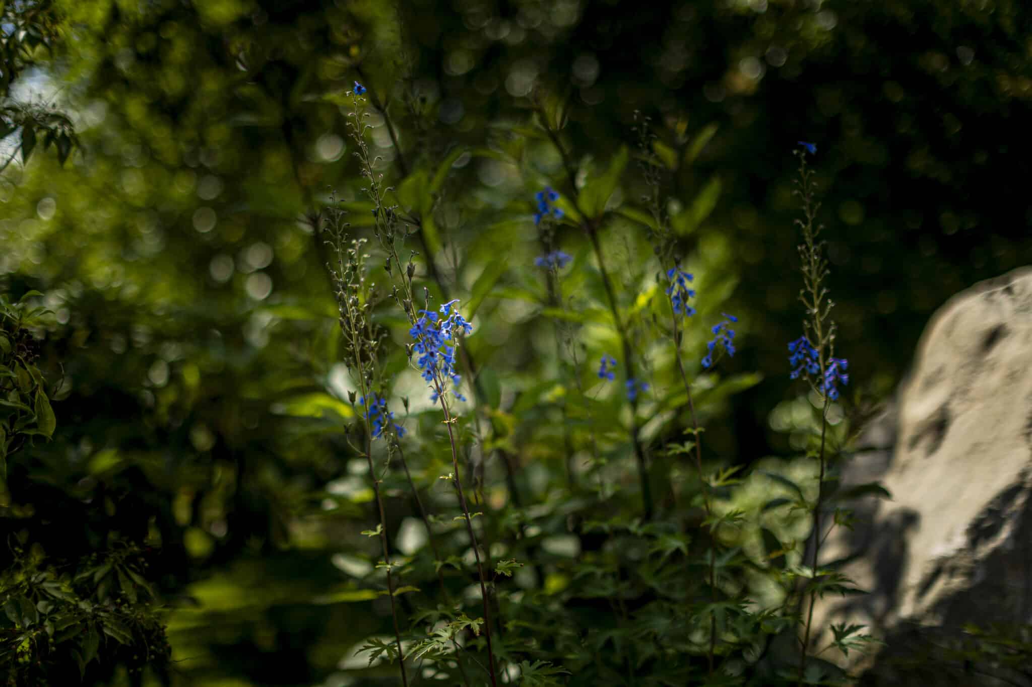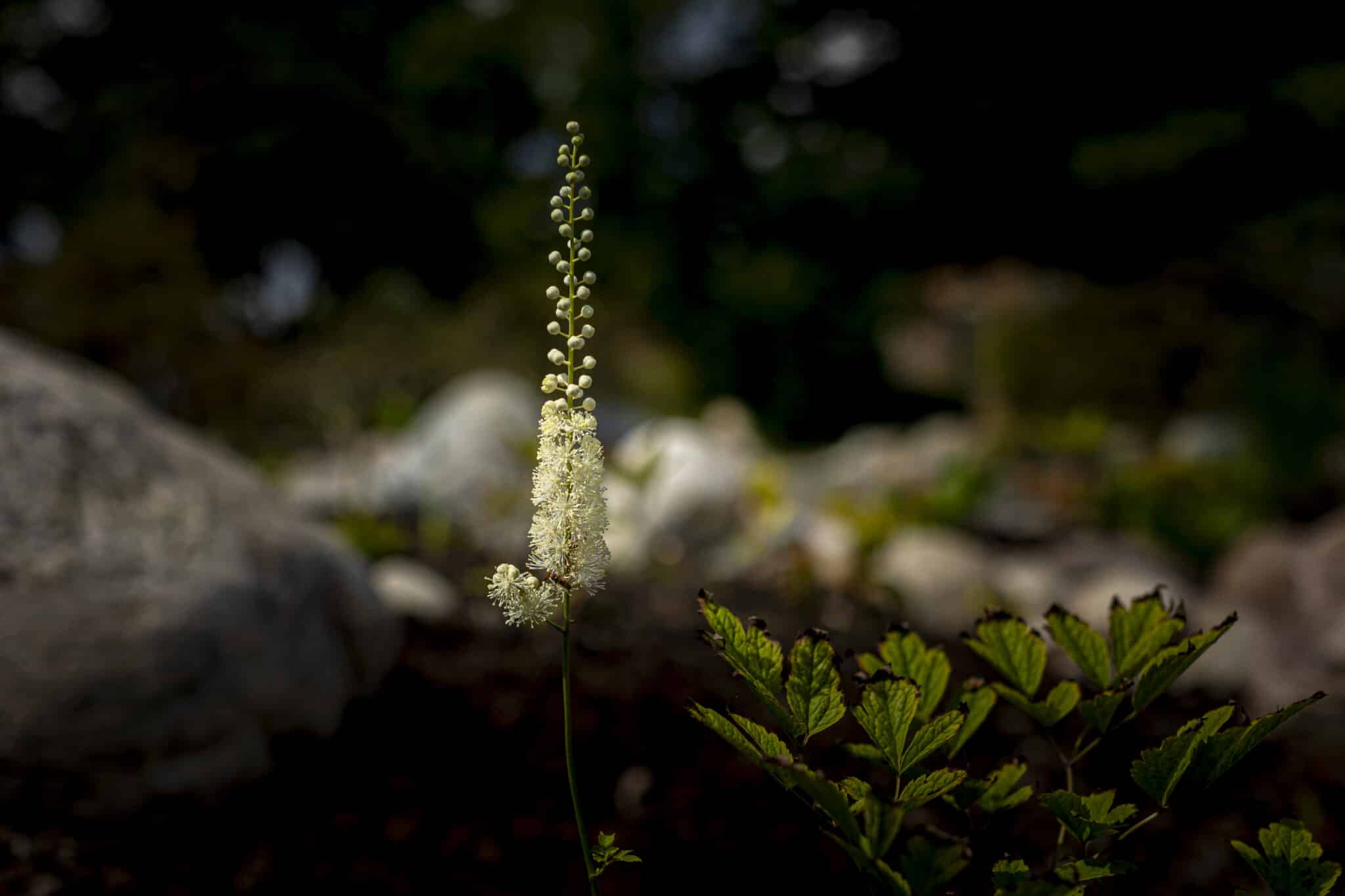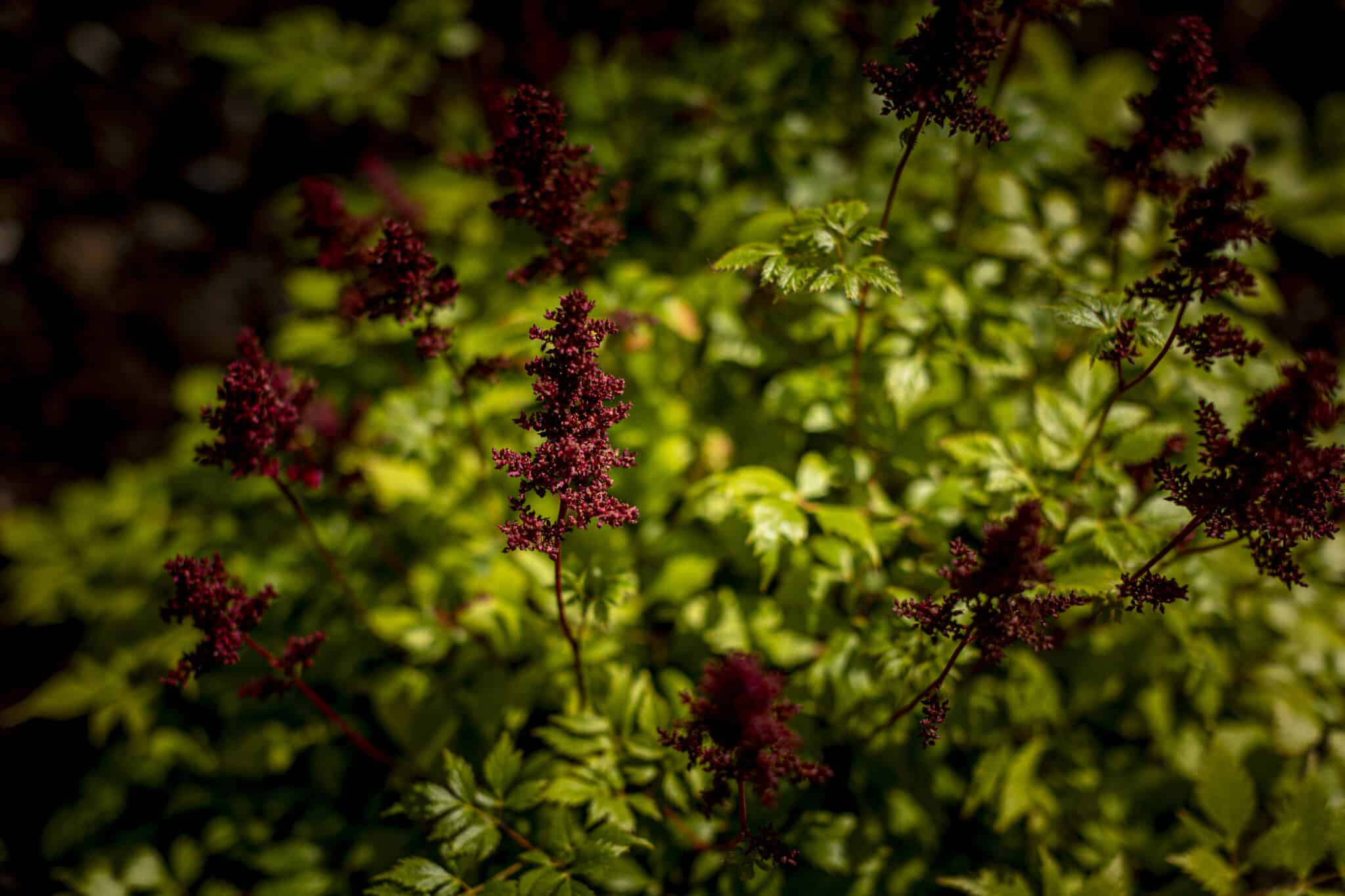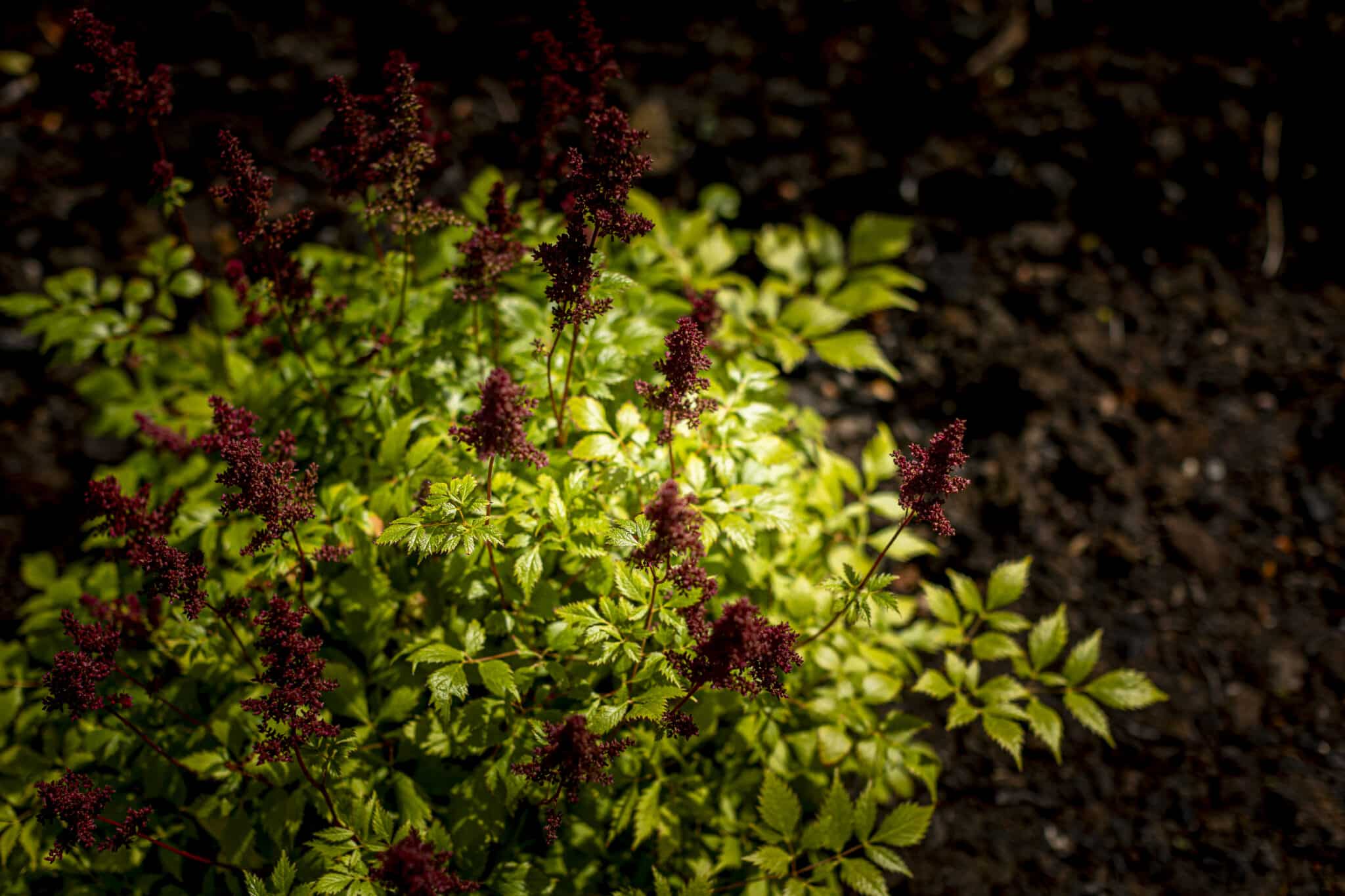 Surbundsplanter – især Rhododendron, Pieris og andre lyngfamilier – er plantet i et miljø skabt specifikt til dem, med veldrænet jord, skyggefugtige lommer, natursten og et levende, organisk bundmiljø.