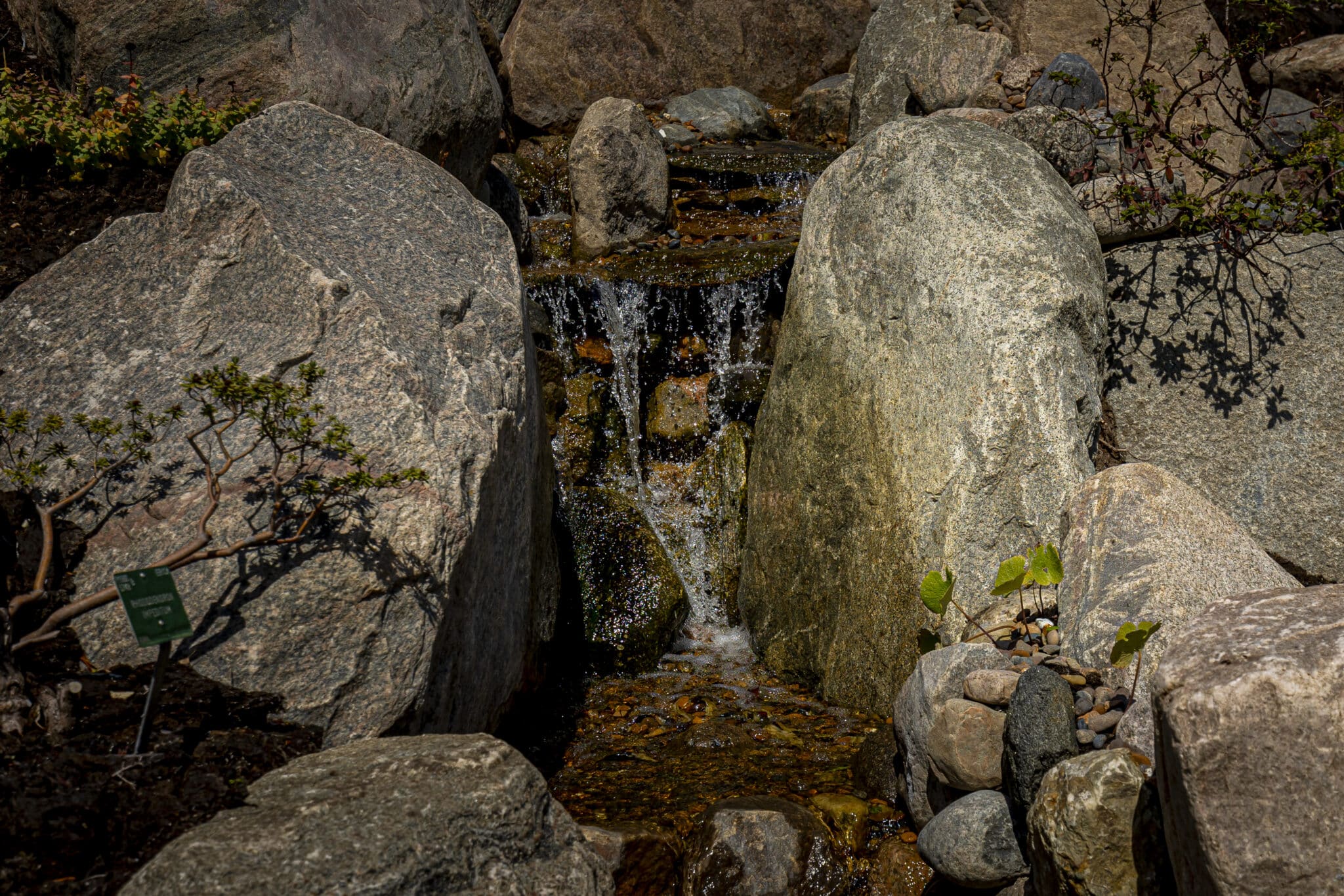 Det snoede vandløb løber som en rød tråd gennem hele anlægget og binder området sammen med flere sø-partier og større vandfald.