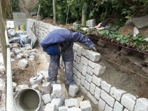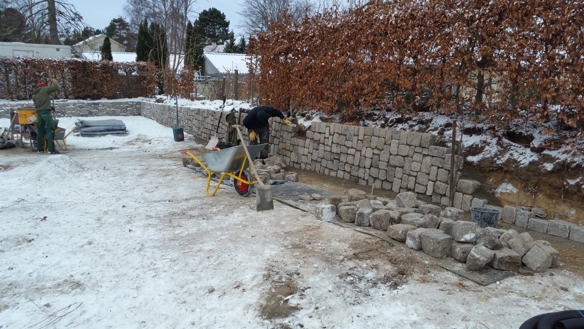 ​Opsætning af brostensmure i haven