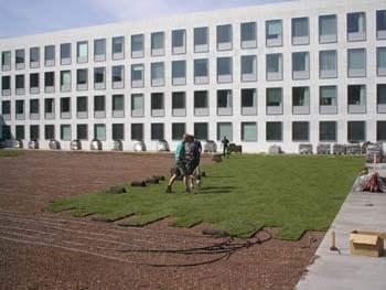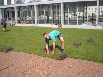 Rullegræs udlægning hos Maersk med vandingssystem under