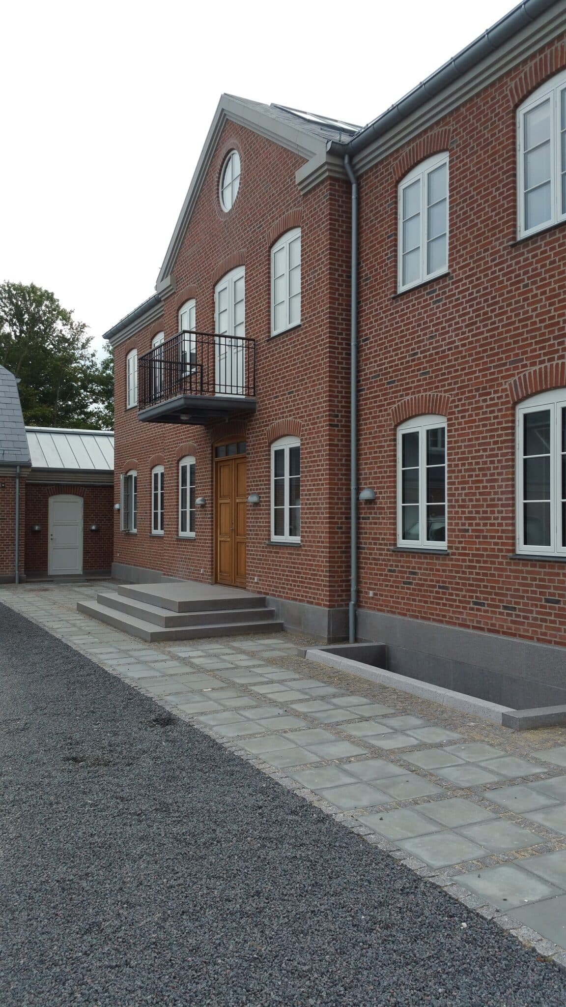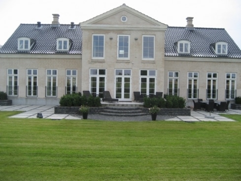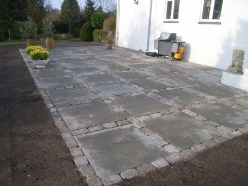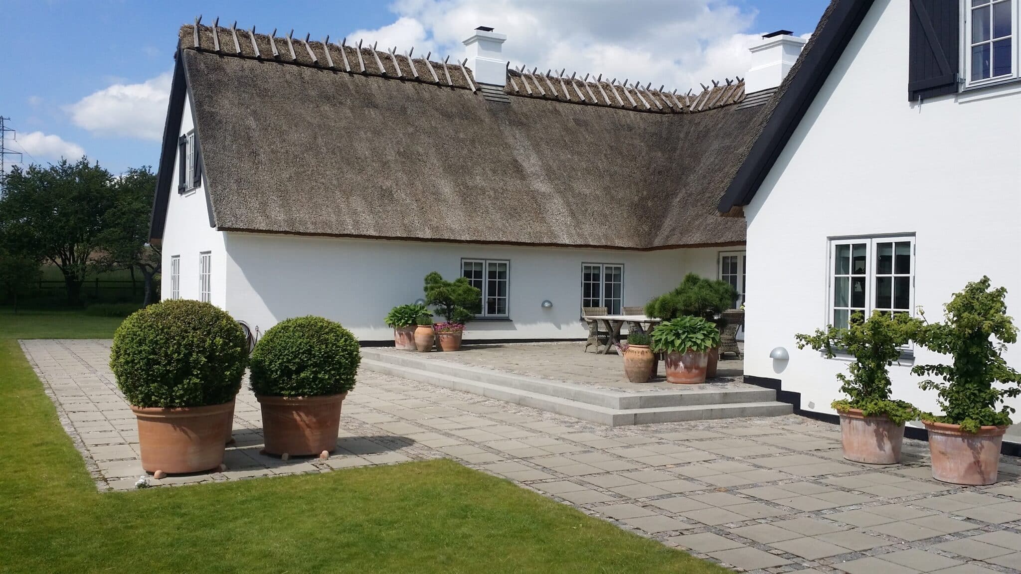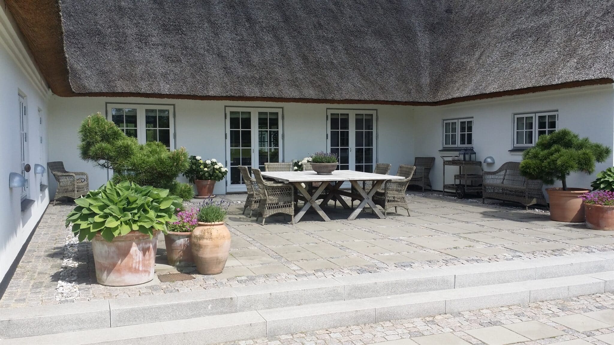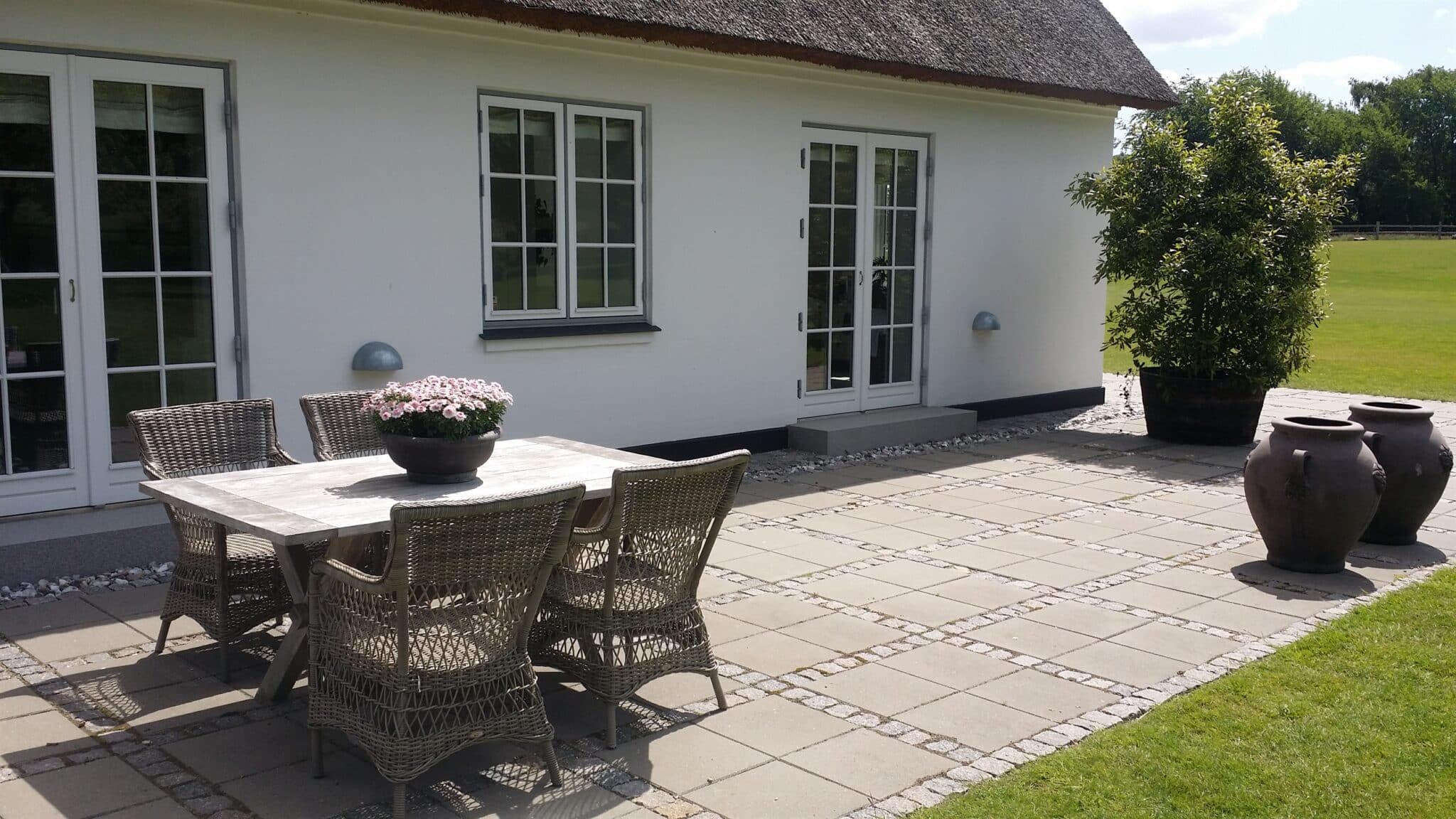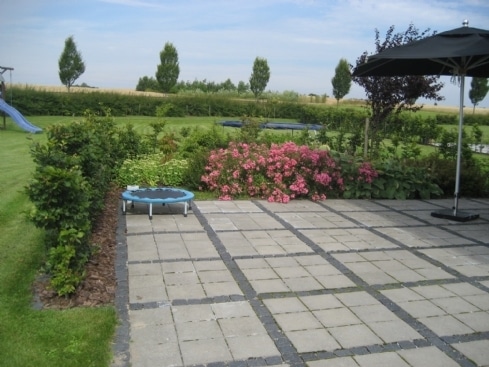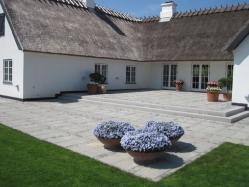 Landsted med terrassebelægning med 40x40x5 4x4 med