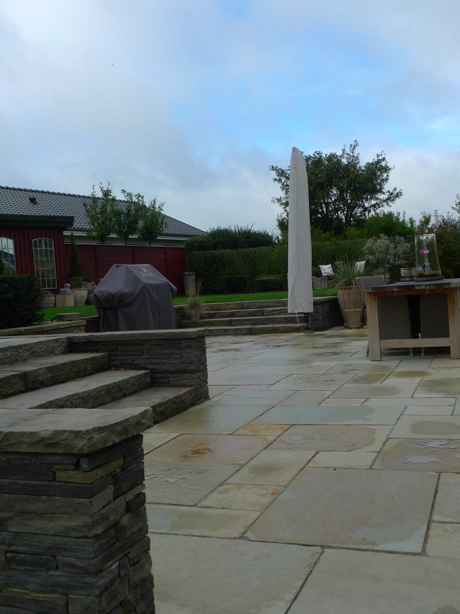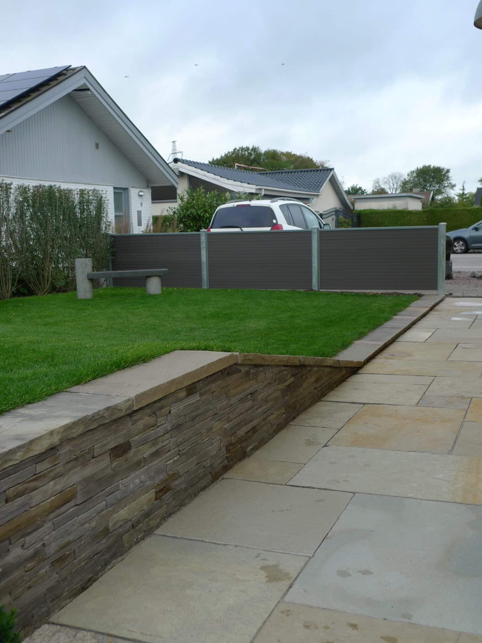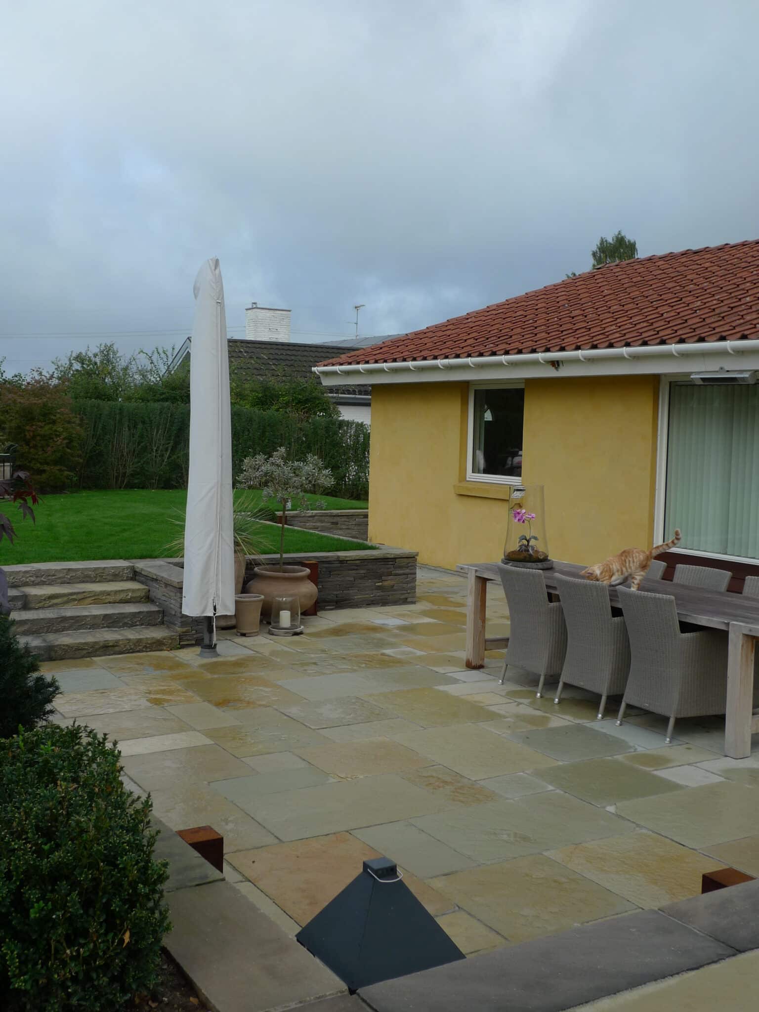 Målet var at skabe en funktionel og harmonisk have, hvor natursten, terrasser og grønne rum bindes sammen i en helstøbt helhed.