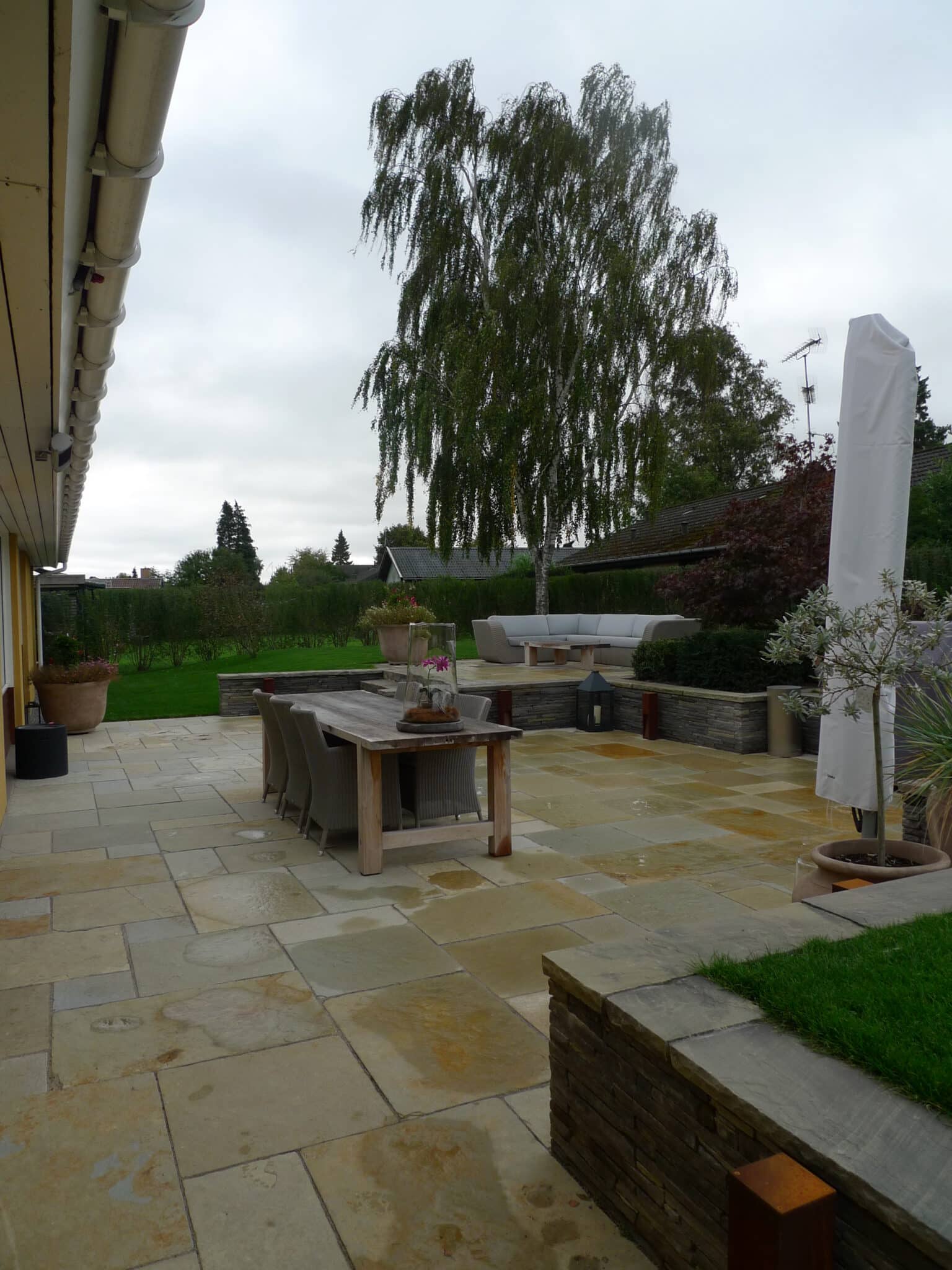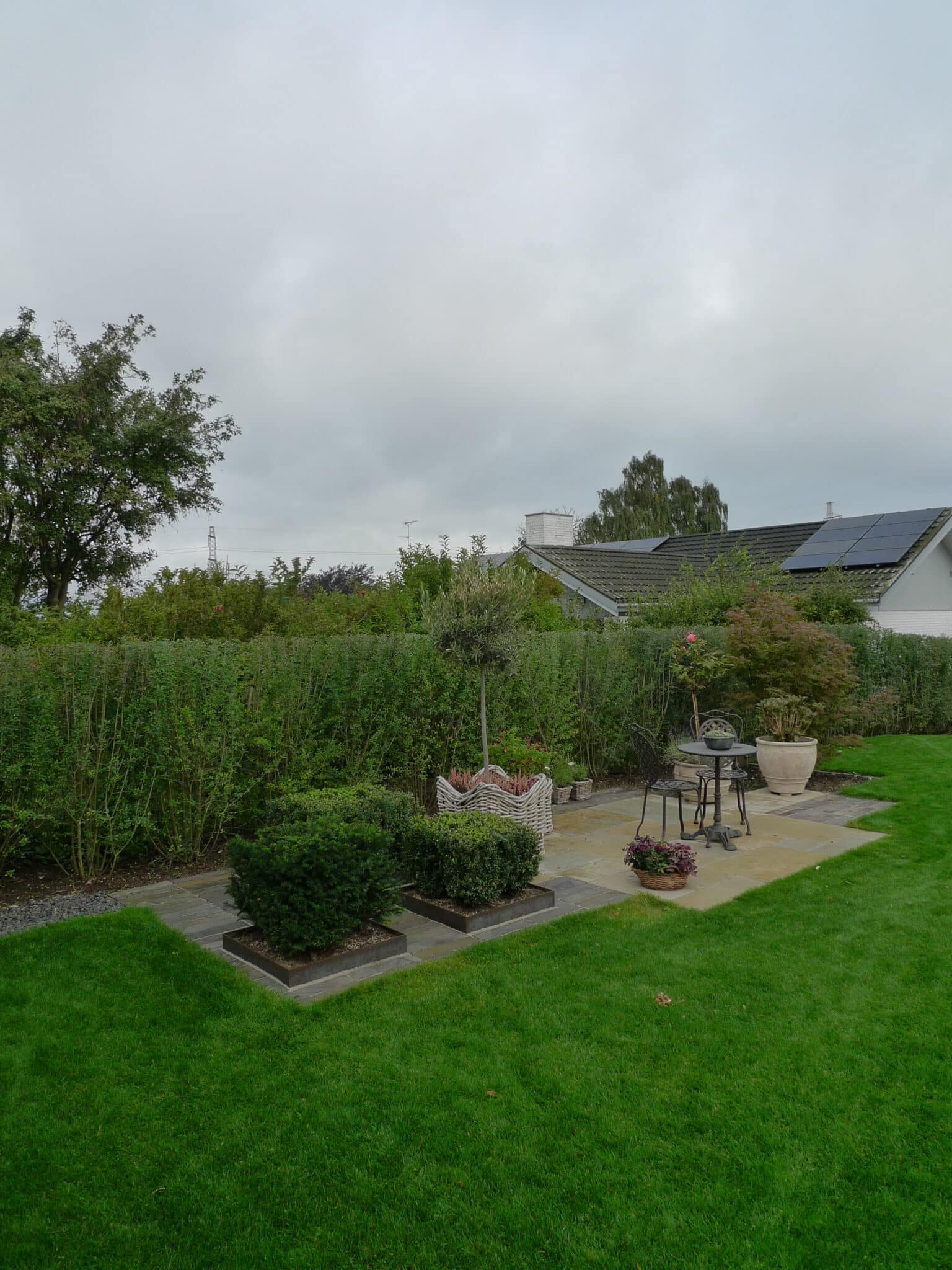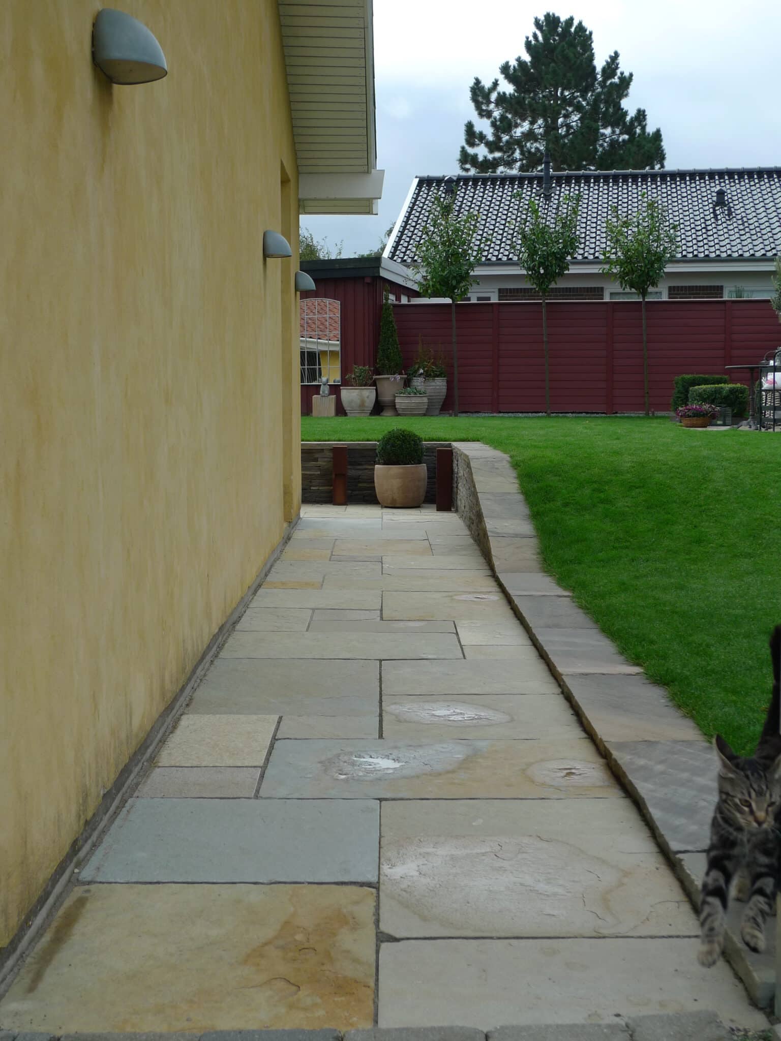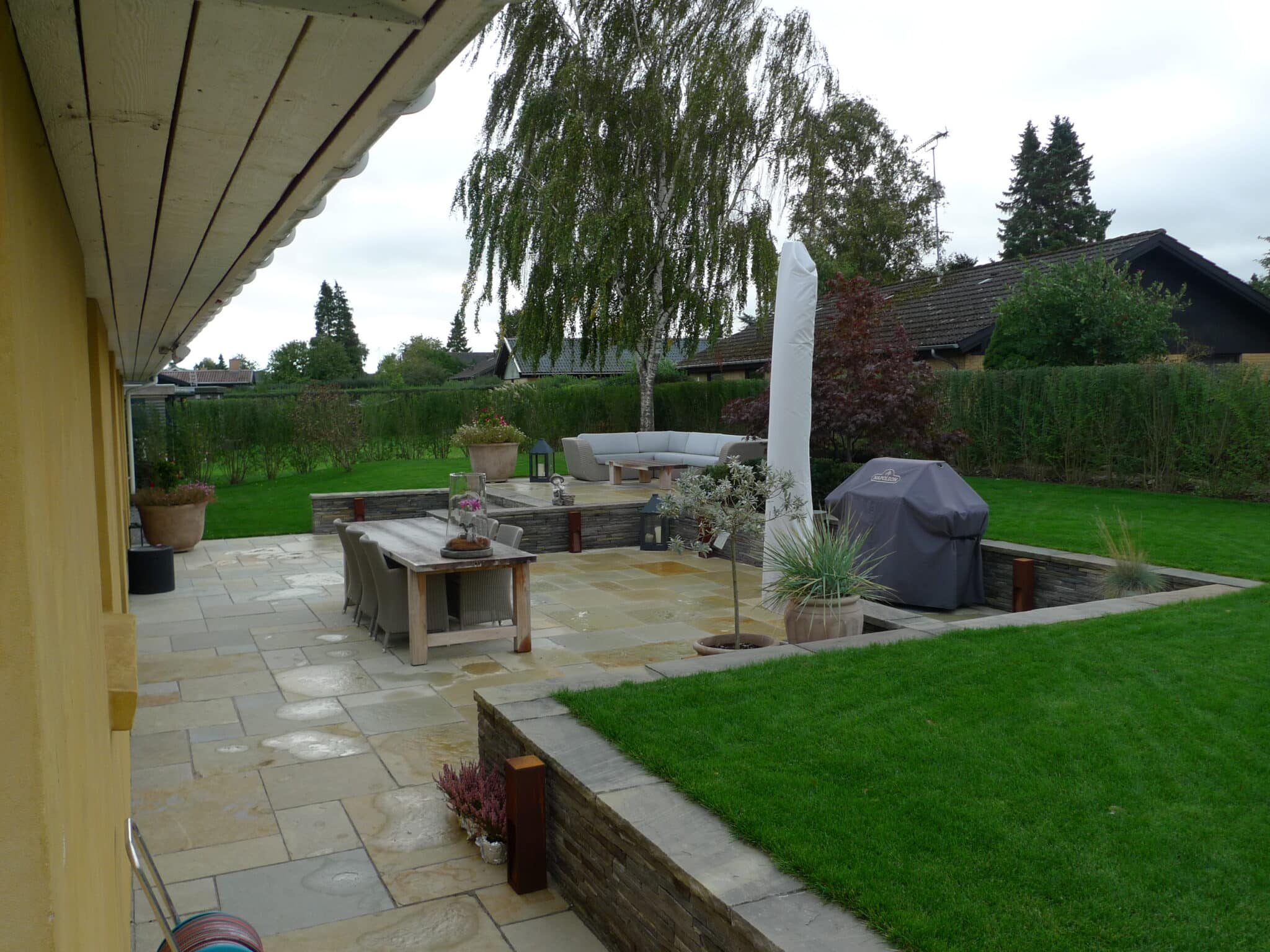 Målet var at skabe en funktionel og harmonisk have, hvor natursten, terrasser og grønne rum bindes sammen i en helstøbt helhed.