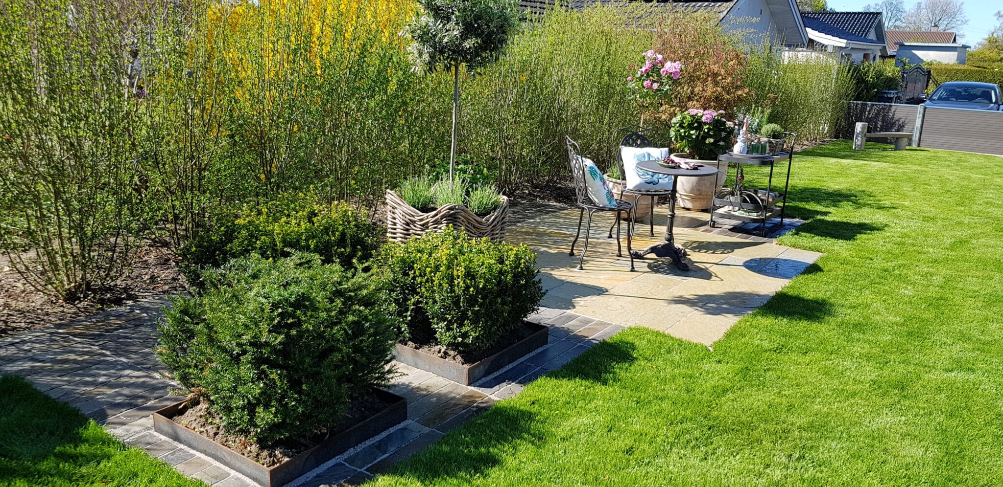 Denne private have i Slangerup er designet af RoomOutside.dk og udført af Junckerhaven.
