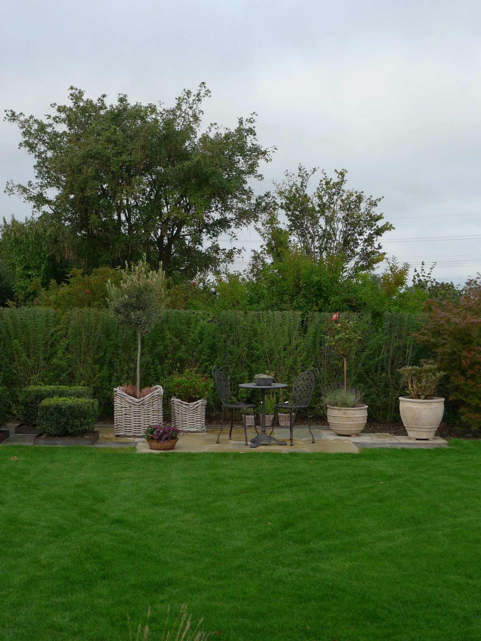 - Eksisterende birk og syren bevaret og integreret i den nye helhed