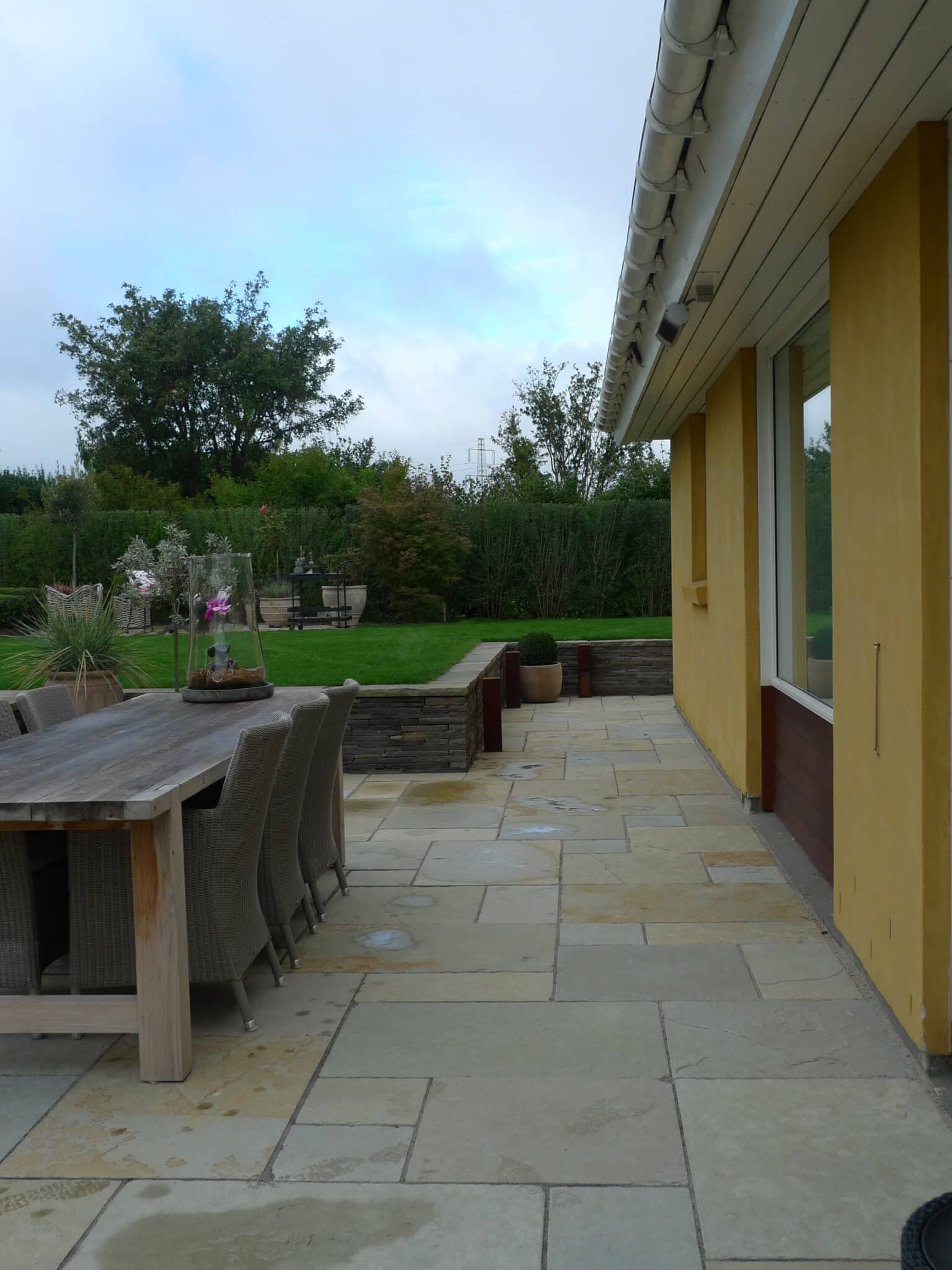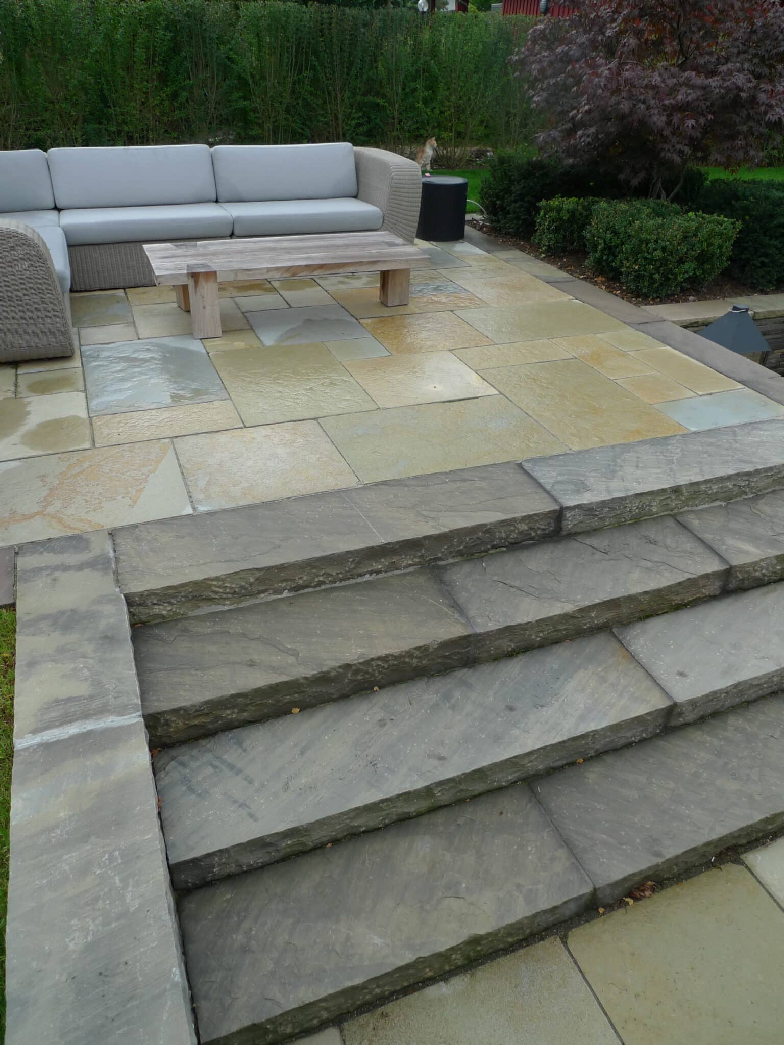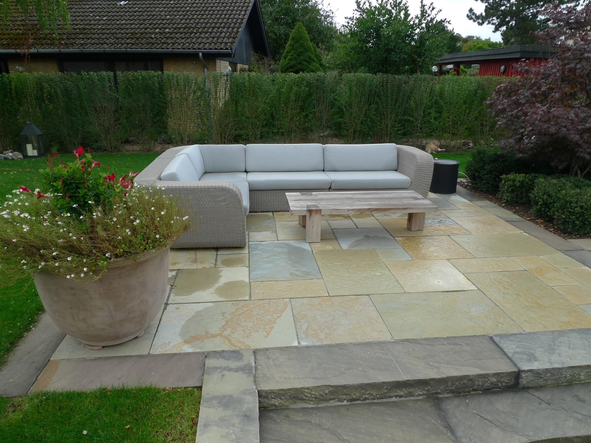 - 99 m² Limestone Beige belægning i Chelsea-mønster med kant i Columbus Sandstone