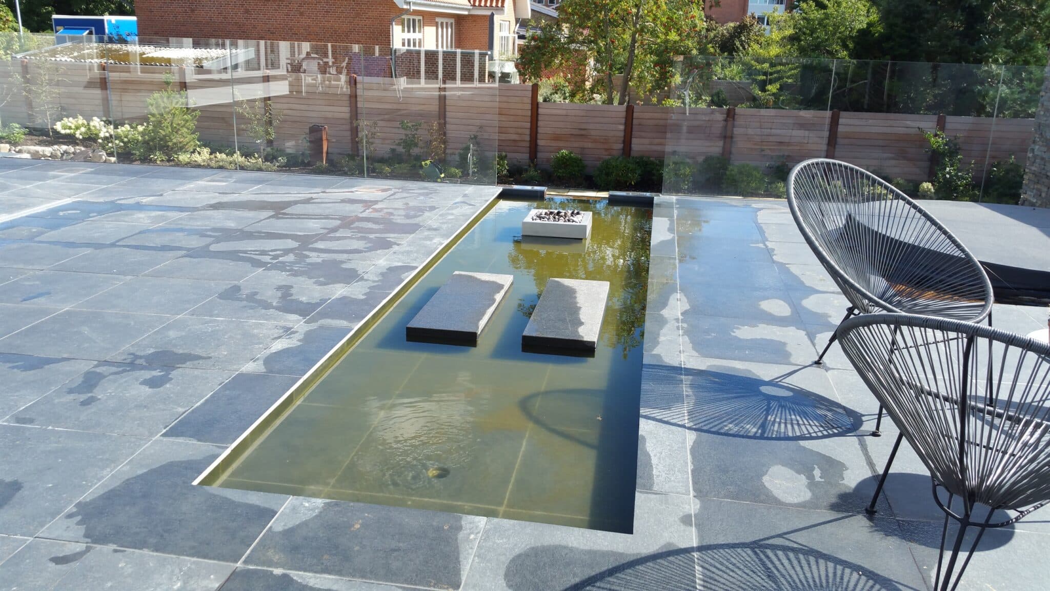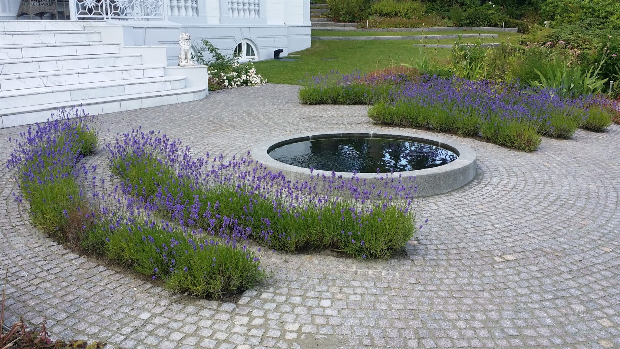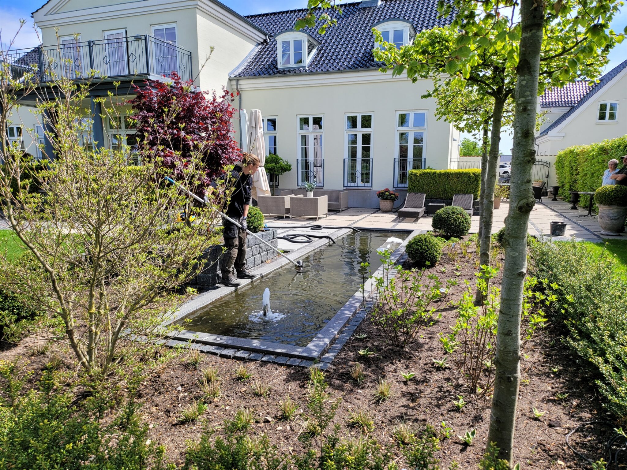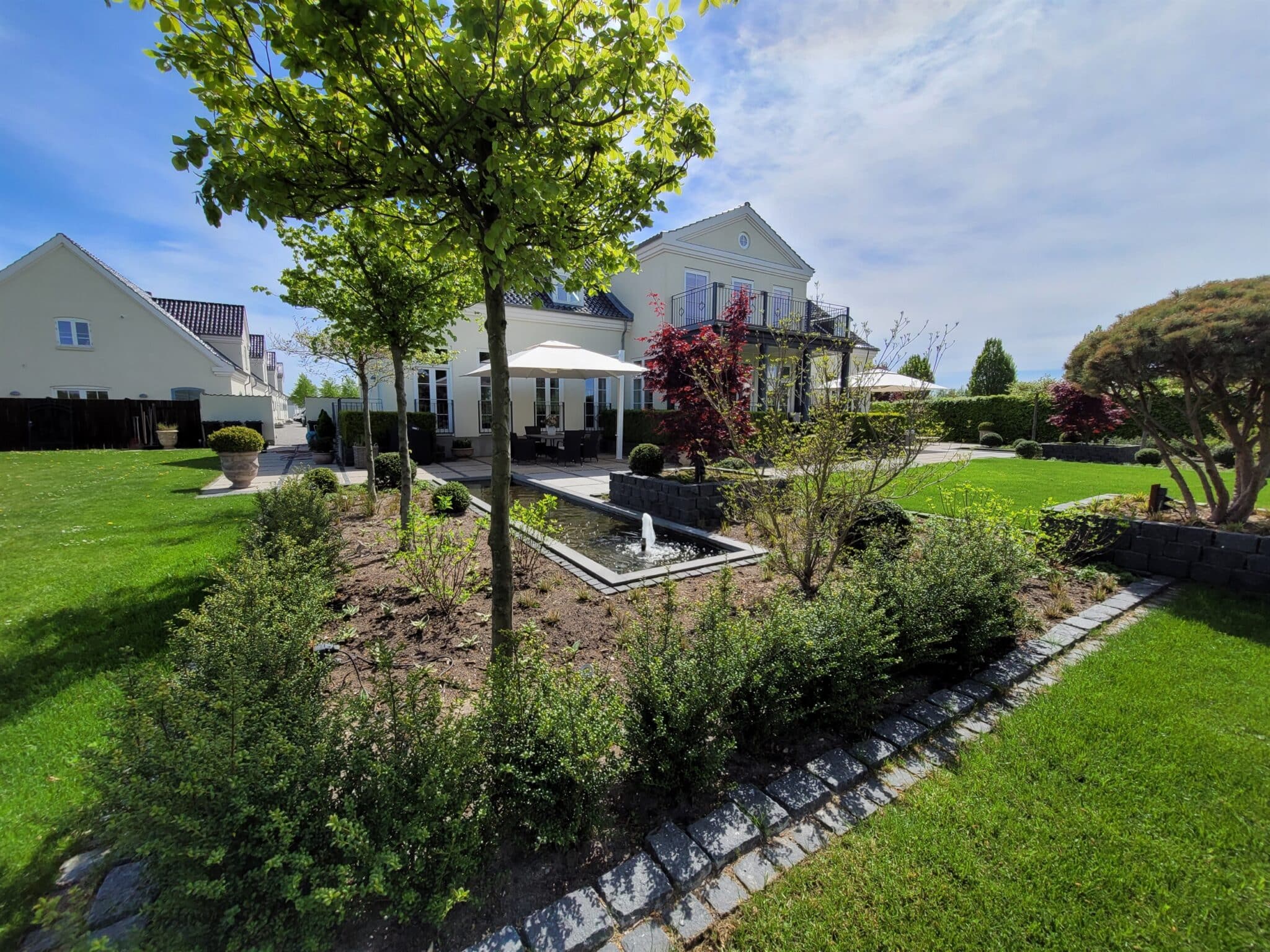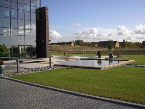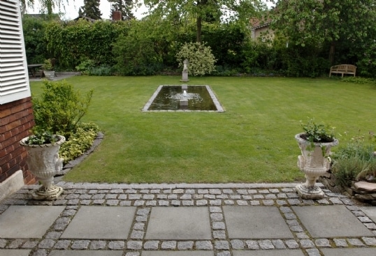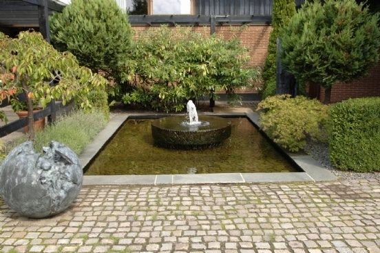Den formelle formgivning som et spejlbassin vælges ofte, når vandet skal understøtte et hus med en stram arkitektonisk og måske moderne stil.