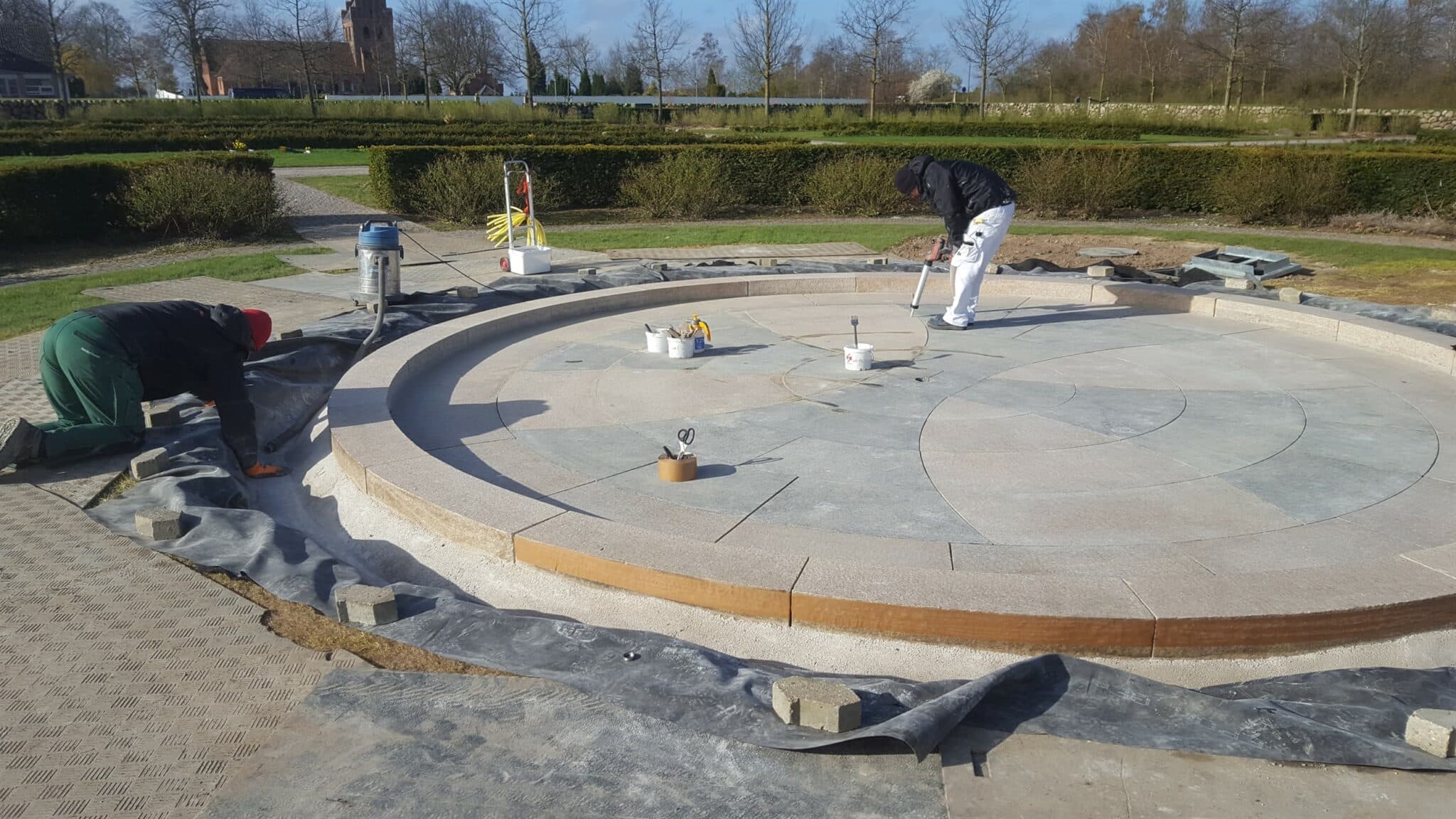 Få at opnå tæthed i bassinet anvendes en EPDM gummidug hvorpå hvorpå vi forankrer stenene med specialbeton eller Epoxy.​