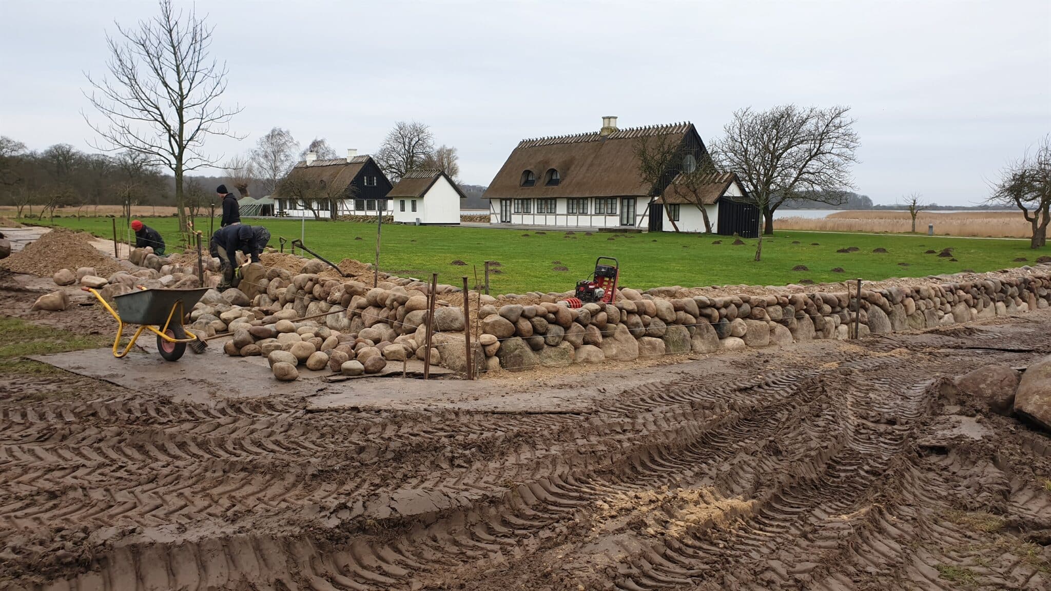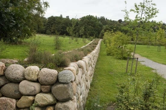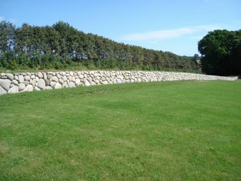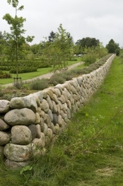 Et stengærde laves ofte af natursten, som er et rigt forekommende produkt på markerne og i den danske undergrund.