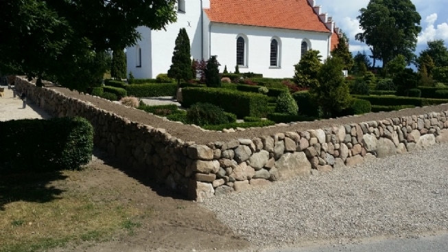 Herunder kan du se nogle af de mange fine stengærder Junckerhaven har opsat på kirkegaarde og i private haver.