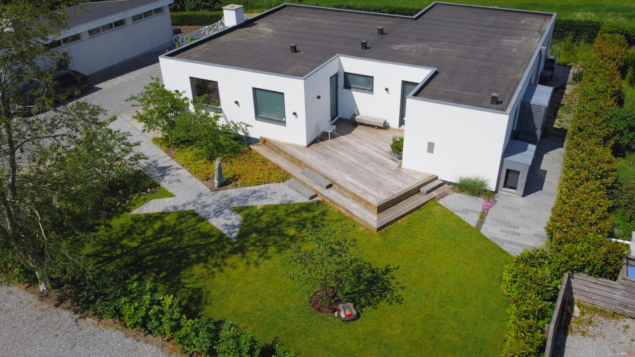 Tor Haddeland har skabt et design, hvor natursten, træ og karakterfulde træer er sat i centrum. Junckerhaven har stået for udførelsen, der forener præcise belægninger, terrasser og frodig beplantning til et moderne og helstøbt havemiljø.
