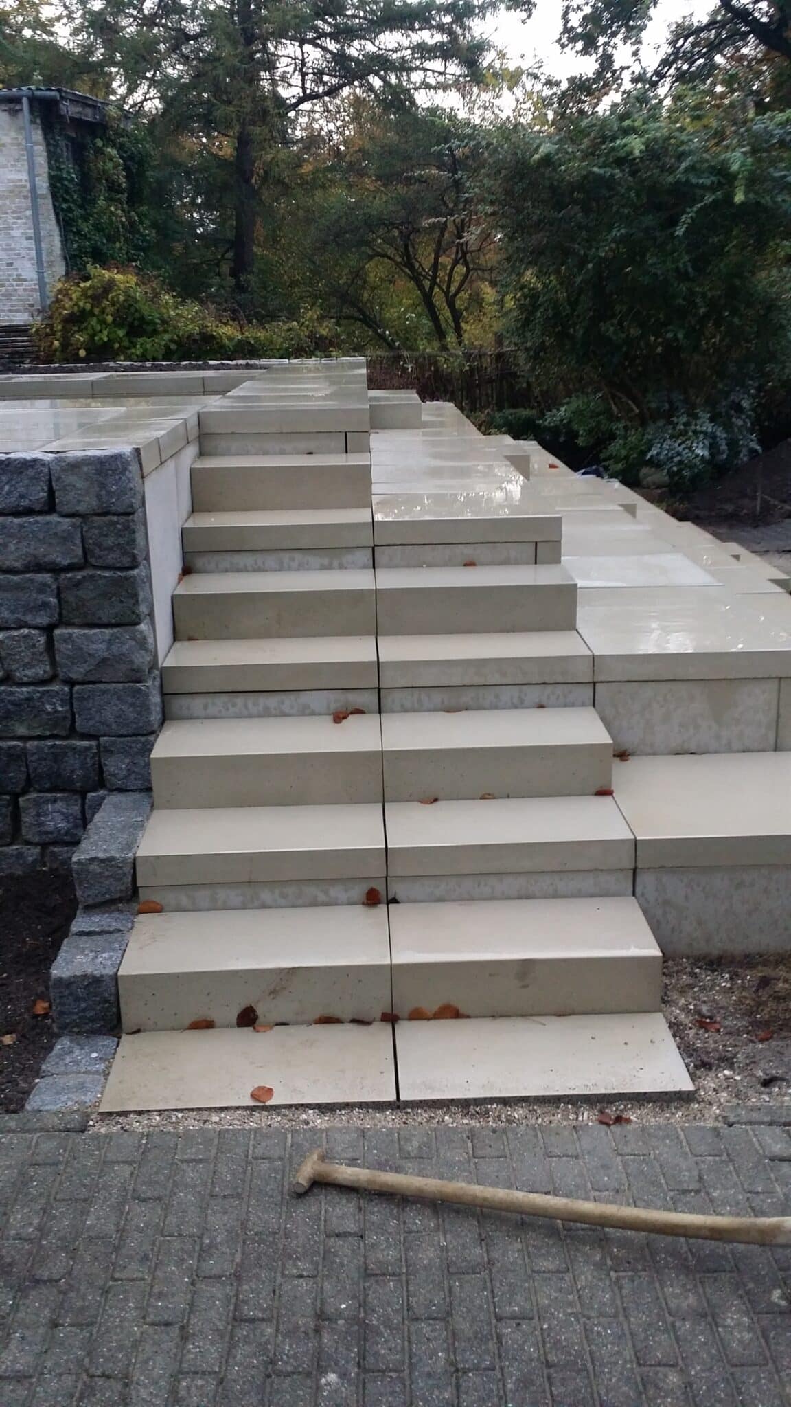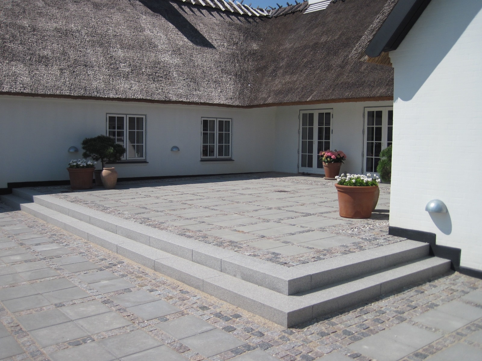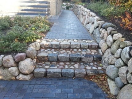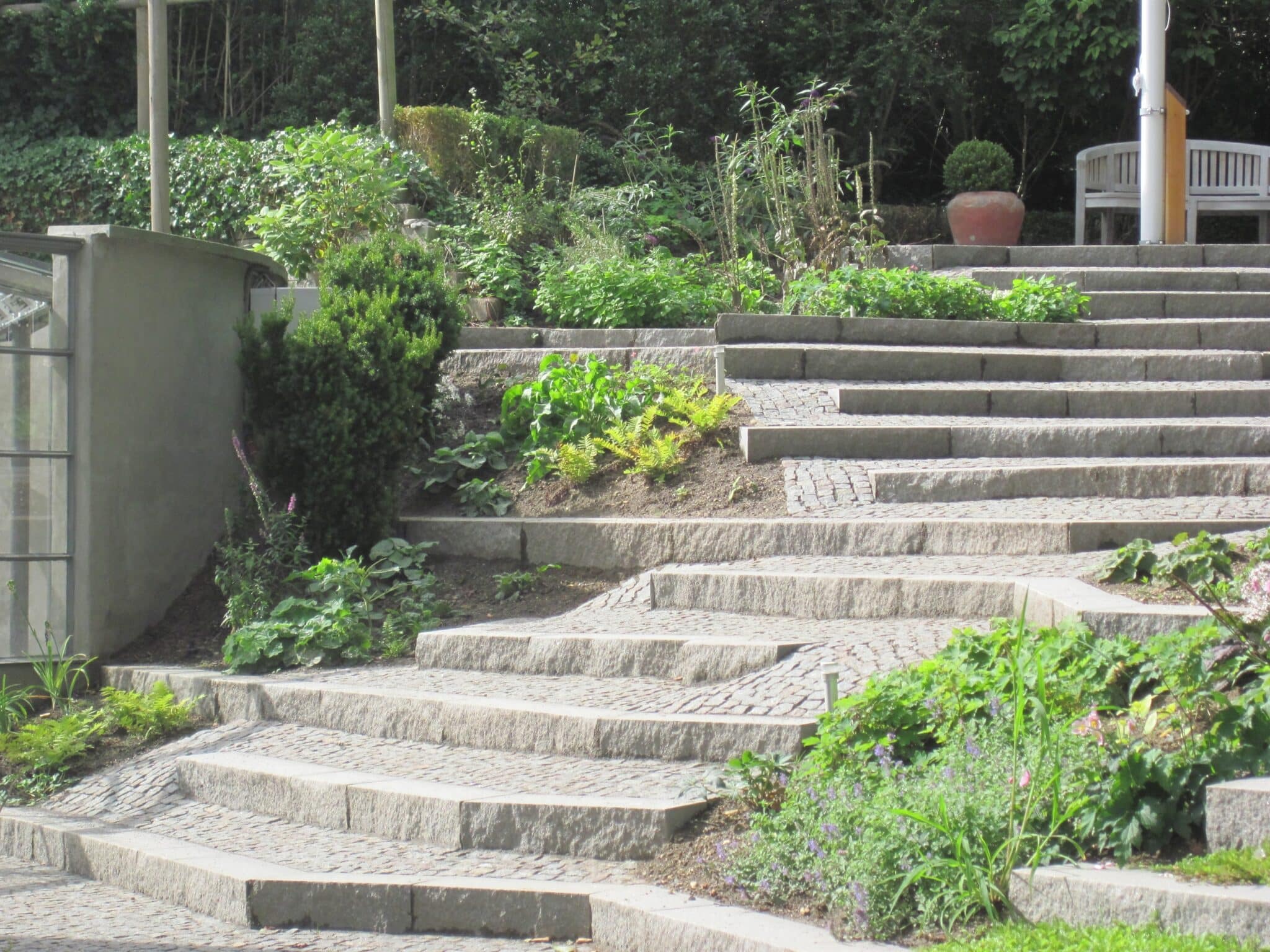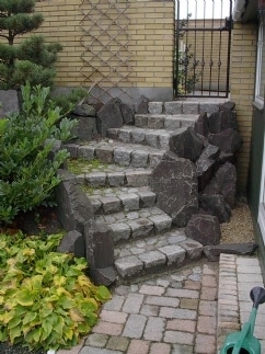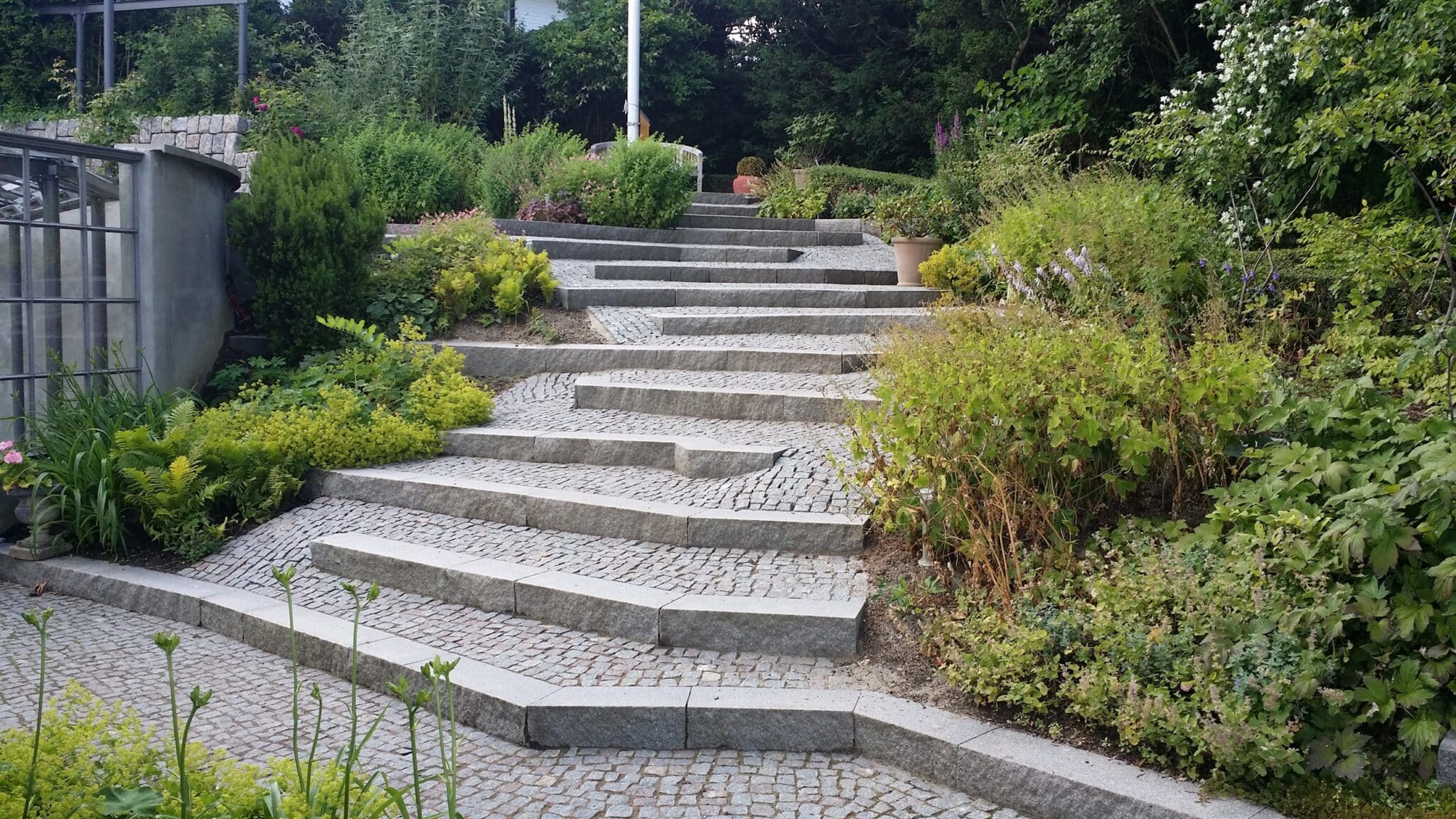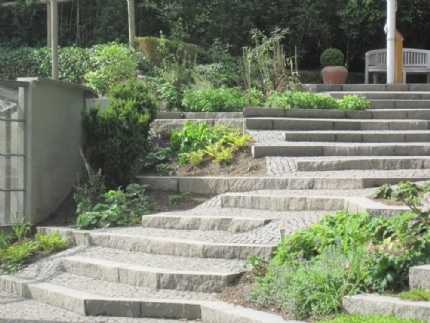 Her kan du se trapper vi har bygget i mange varianter – fra tunge bloktrin i natursten til elegante trapper ved terrasser, orangerier og indgangspartier. Mix og materialeskift kan give helt nye udtryk – og ofte er det netop trappen, der binder haven smukt sammen.