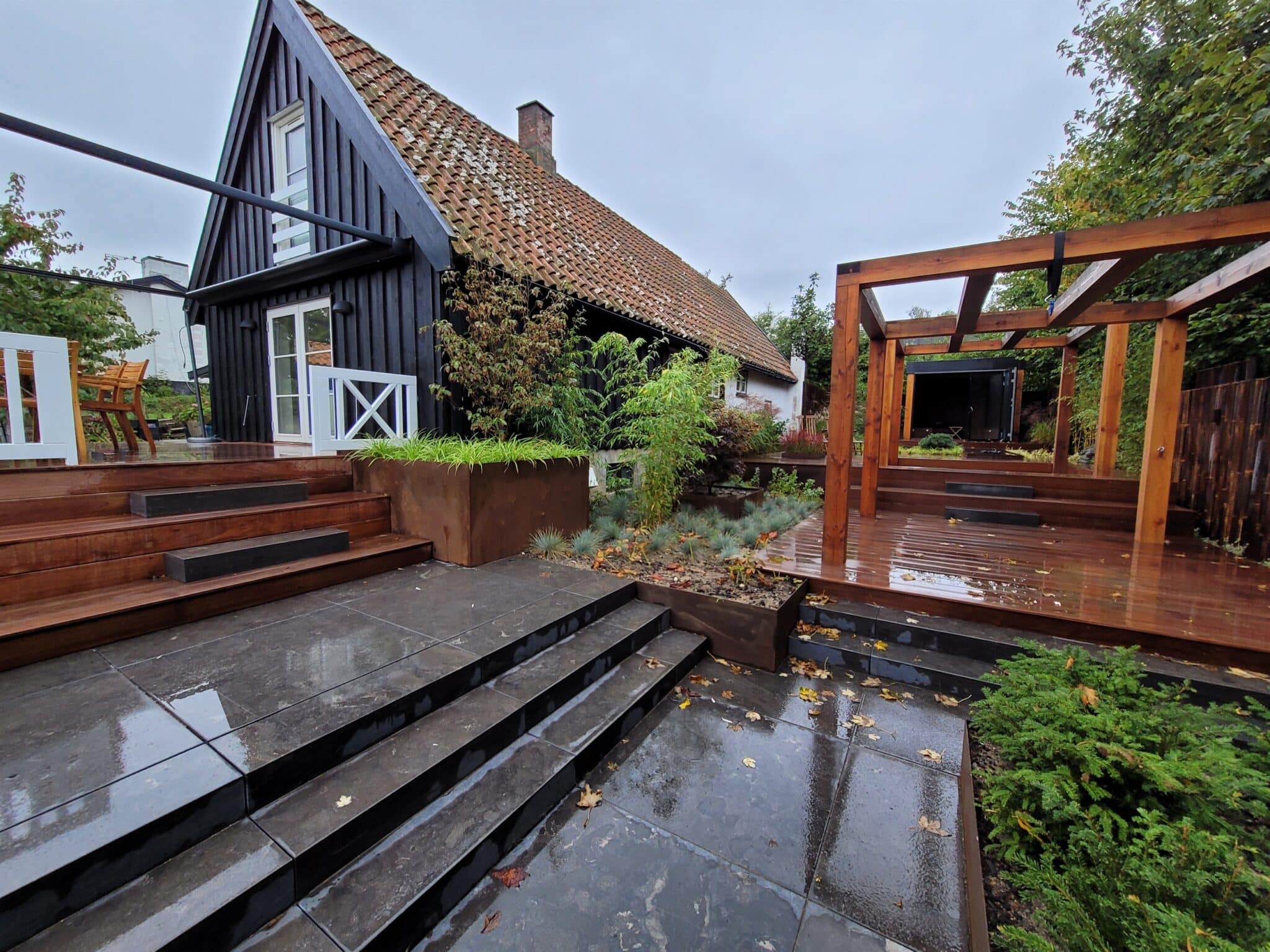 En trappe i haven er mere end kun et funktionelt element. Den skaber retning, binder niveauer sammen og kan blive et af de mest karakterfulde aftryk i din have. Uanset om terrænet falder naturligt eller vi skaber niveauforskelle som led i designet, bygger vi trapper der både holder – og klæder helheden.