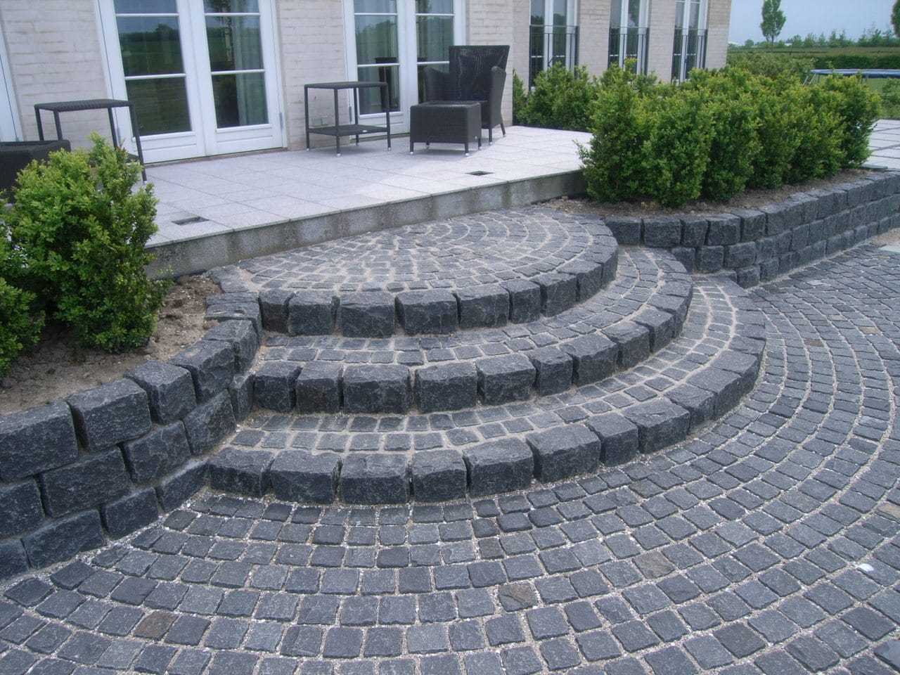 - Kombinationer – f.eks. granit + beton, træ + skifer, natursten med bløde overgange